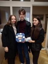 Predaj nezábudiek sa uskutočnil vďaka pani psychologičke a peer aktivistom- Nicolas Popovič, Júlia Danielovičová, Michaela Rojková (IV.C) a Ján Lukáč s Alenou Závodníkovou (III.B).